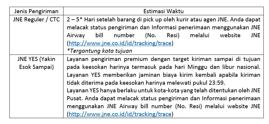 Estimasi pengiriman sesuai dengan jenis pengiriman yang anda pilih. Anda juga dapat melakukan pengecekan status pesanan di http://www.jne.co.id/id/tracking/trace